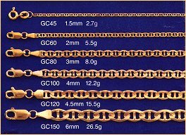 All weights shown on chains are approximate in grams |